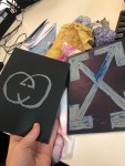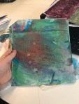 Secondly we dropped the wax around the fabric creating an image on the fabric. We did this to so that the wax would act as a layer over the fabric therefore not allowing the ink to get onto that select part of the fabric. We then dyed the fabric which allowed for our design to stand out more than it did with it being in wax. After we dyed the fabric we then allowed it to dry on the radiators. Next we had to iron off the wax revealing the image in white underneath, I personally didn’t do this as I wanted to show the process. This doesn’t matter as the wax is clear and you can still see the design through it.